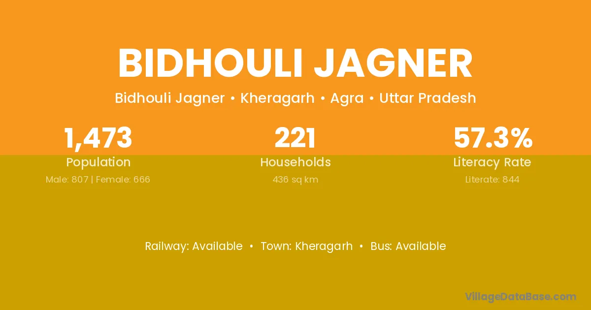 Bidhouli Jagner village is located in the Kheragarh Tehsil of the Agra district in Uttar Pradesh .