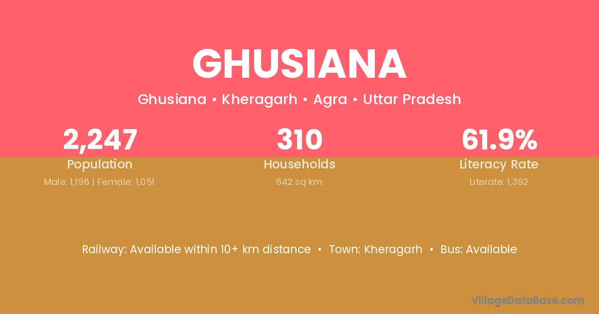 Ghusiana village is located in the Kheragarh Tehsil of the Agra district in Uttar Pradesh .