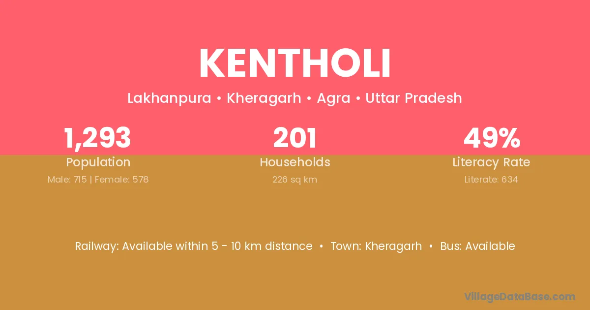 Kentholi village has a total population of 1,293 people, of which 715 are males and 578 are females.