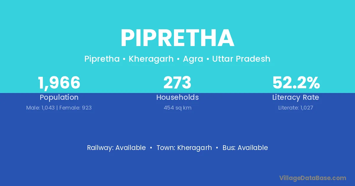 Pipretha village is located in the Kheragarh Tehsil of the Agra district in Uttar Pradesh .