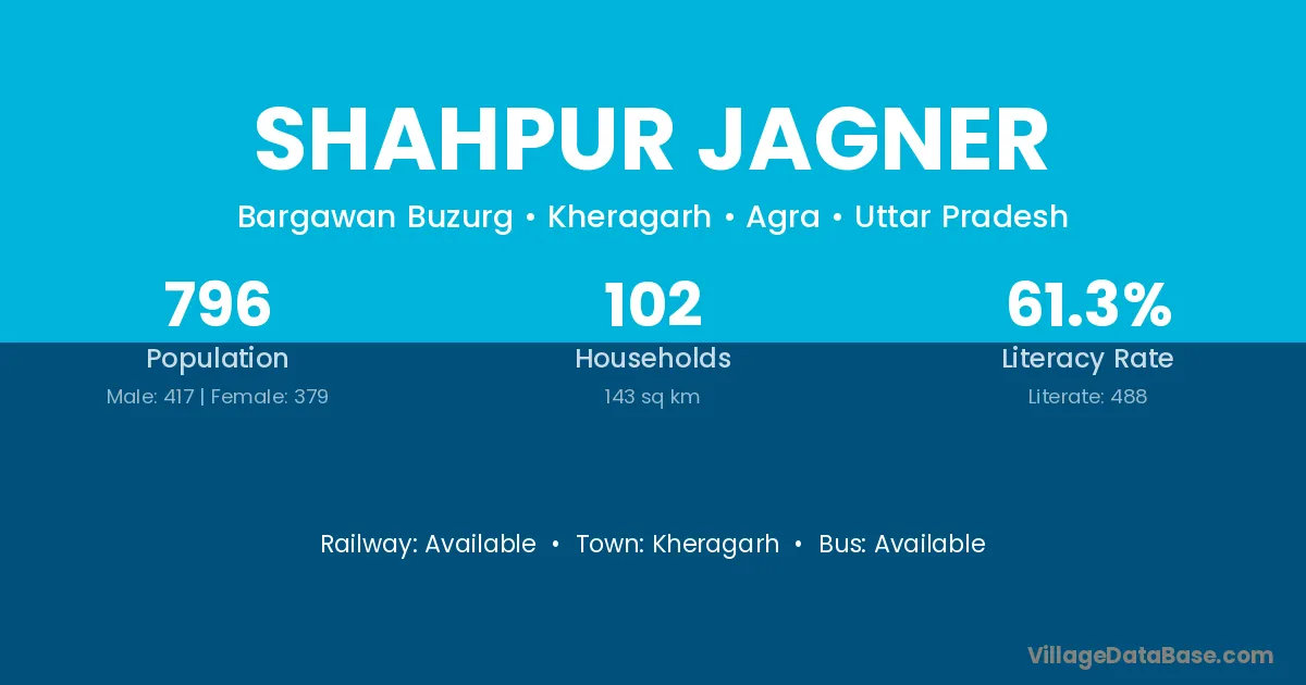 Shahpur Jagner village has a total population of 796 people, of which 417 are males and 379 are females.