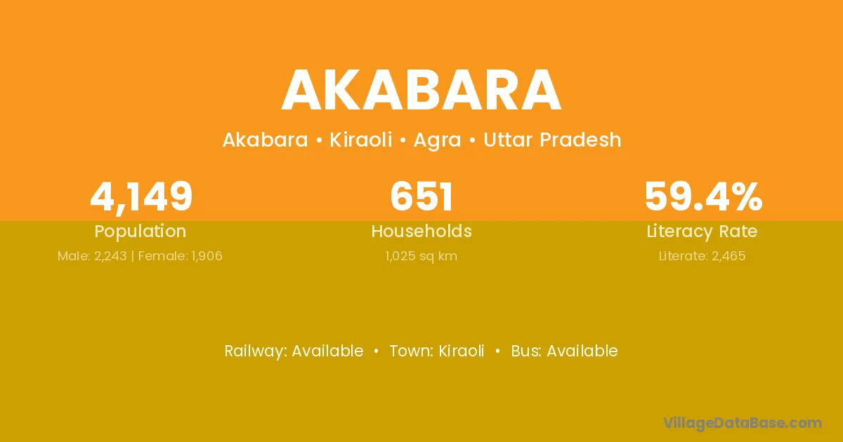 Akabara village is located in the Kiraoli Tehsil of the Agra district in Uttar Pradesh .