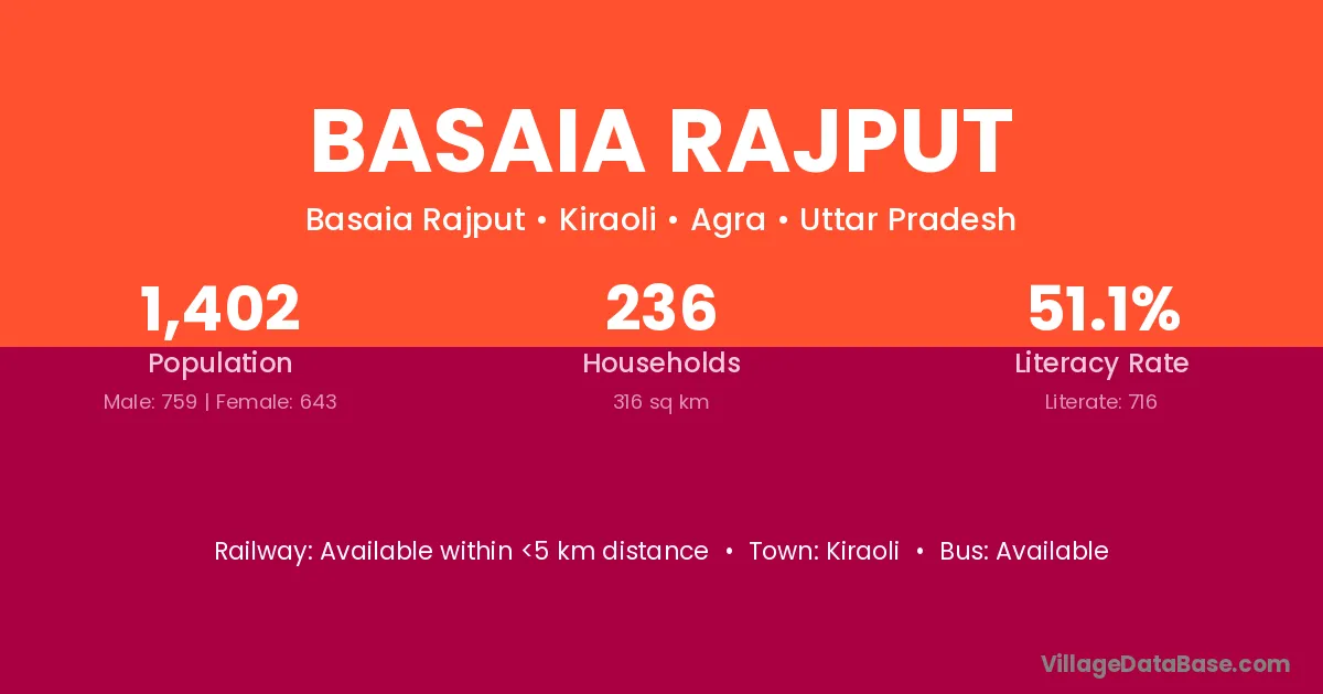 Kiraoli is the nearest town to Basaia Rajput village for major economic activities