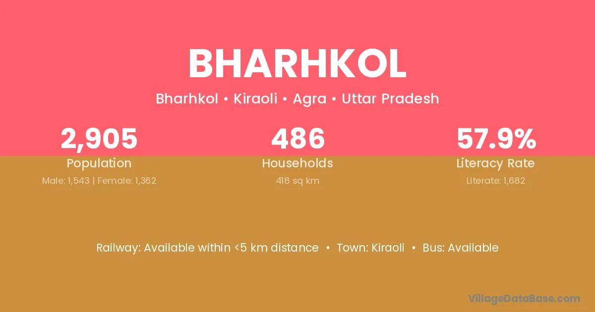 Bharhkol village is located in the Kiraoli Tehsil of the Agra district in Uttar Pradesh .