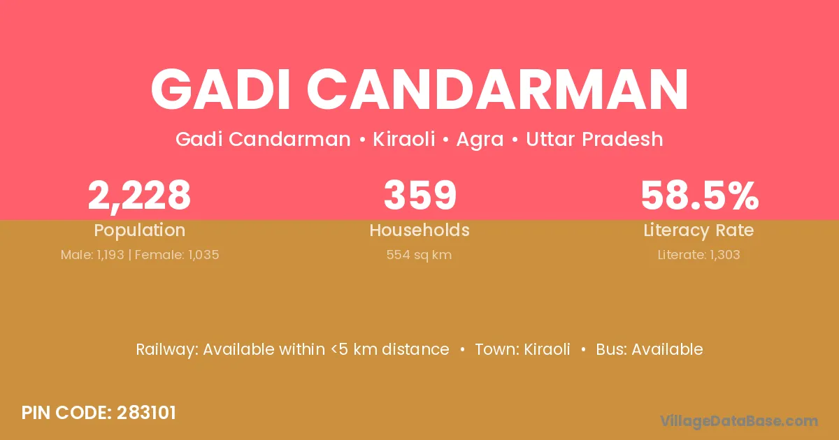 Kiraoli is the nearest town to Gadi Candarman village for major economic activities