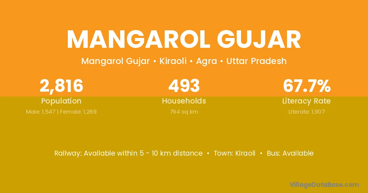 Kiraoli is the nearest town to Mangarol Gujar village for major economic activities
