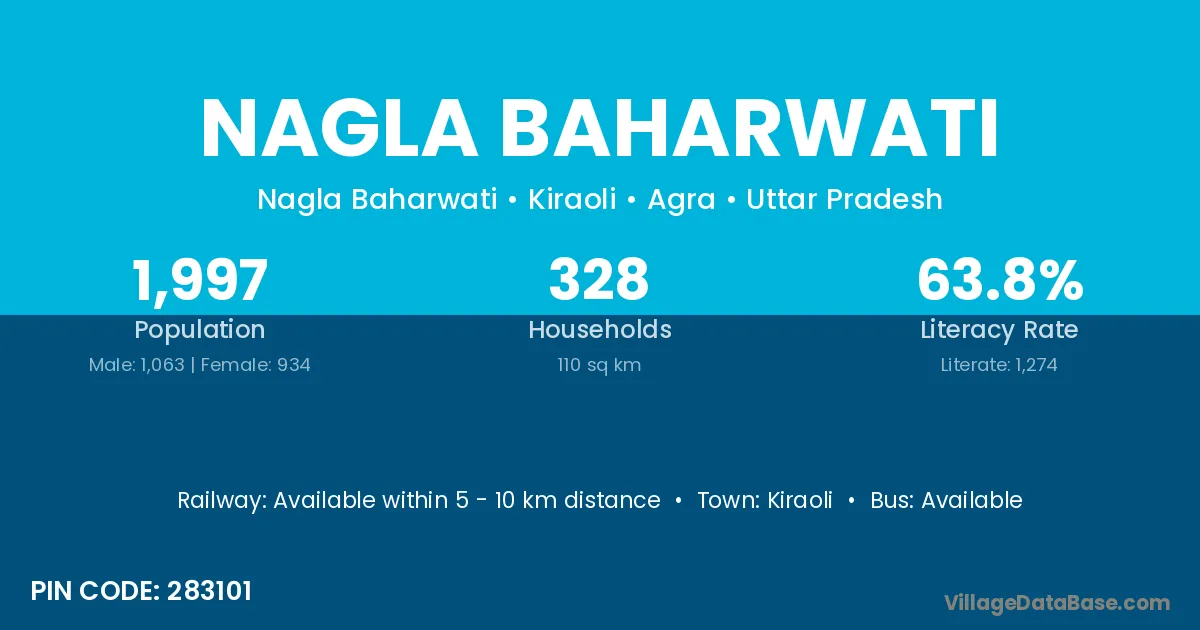 Kiraoli is the nearest town to Nagla Baharwati village for major economic activities