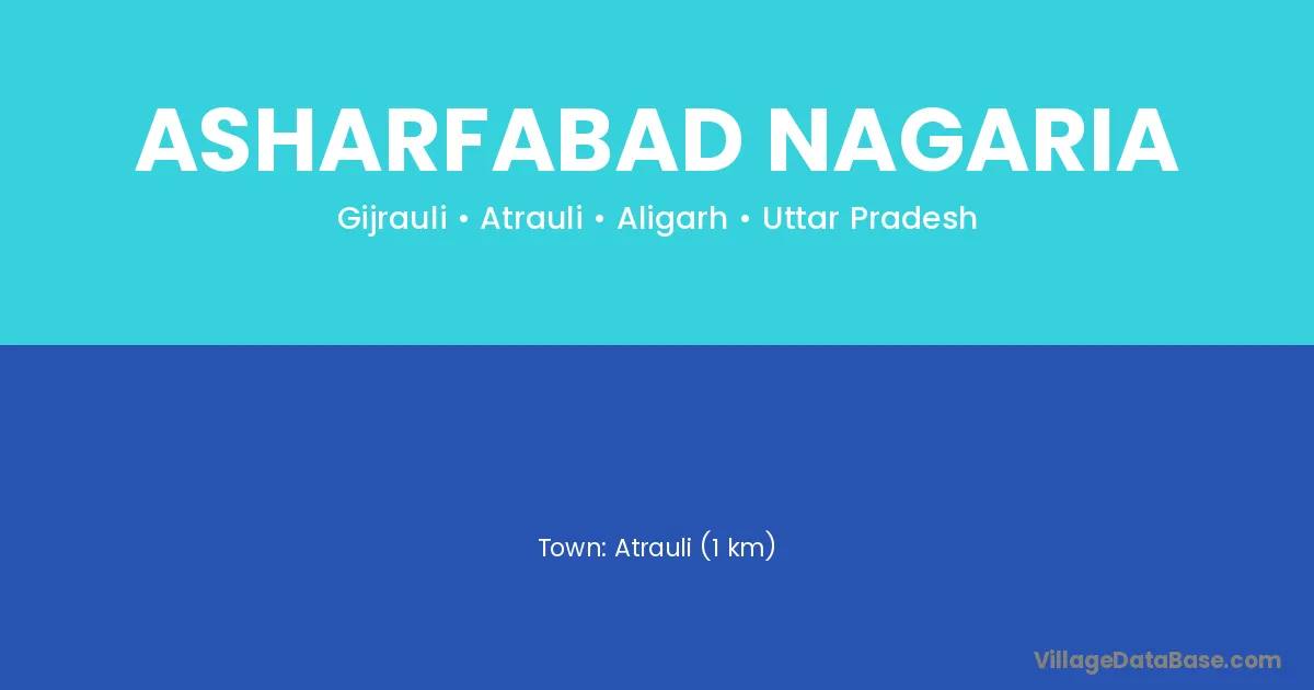 Atrauli (1 km) is the nearest town to Asharfabad Nagaria village for major economic activities and is located approximately 1 km away.