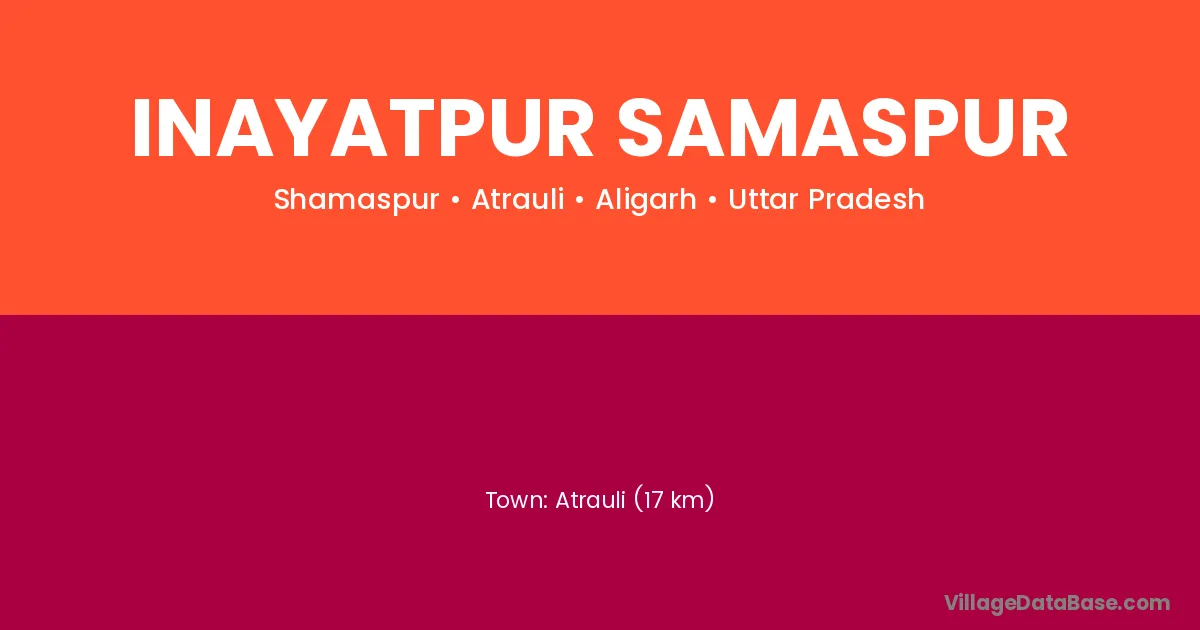 Atrauli (17 km) is the nearest town to Inayatpur Samaspur village for major economic activities and is located approximately 17 km away.