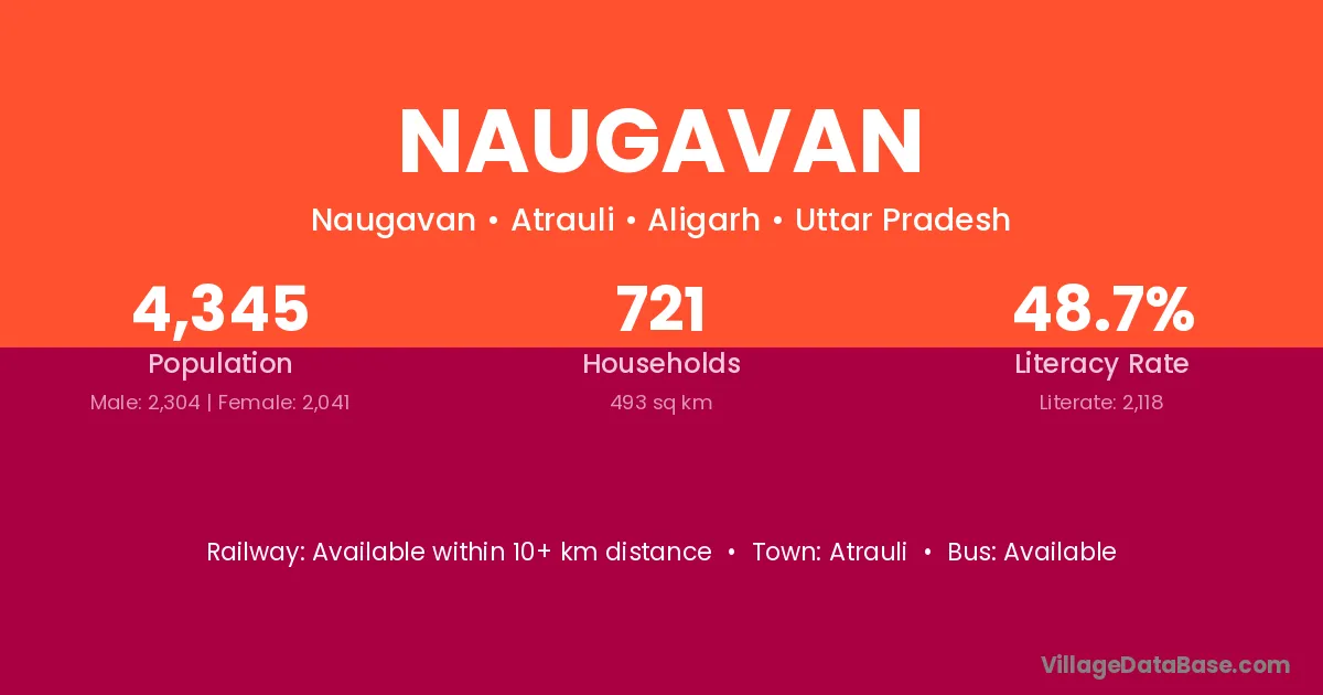 Naugavan village has a total population of 4,345 people, of which 2,304 are males and 2,041 are females.