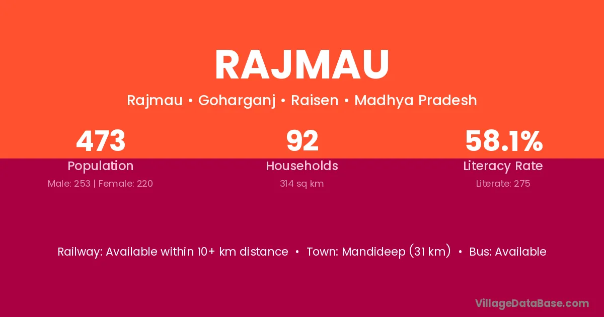 Charra (18 km) is the nearest town to Rajmau village for major economic activities and is located approximately 18 km away.