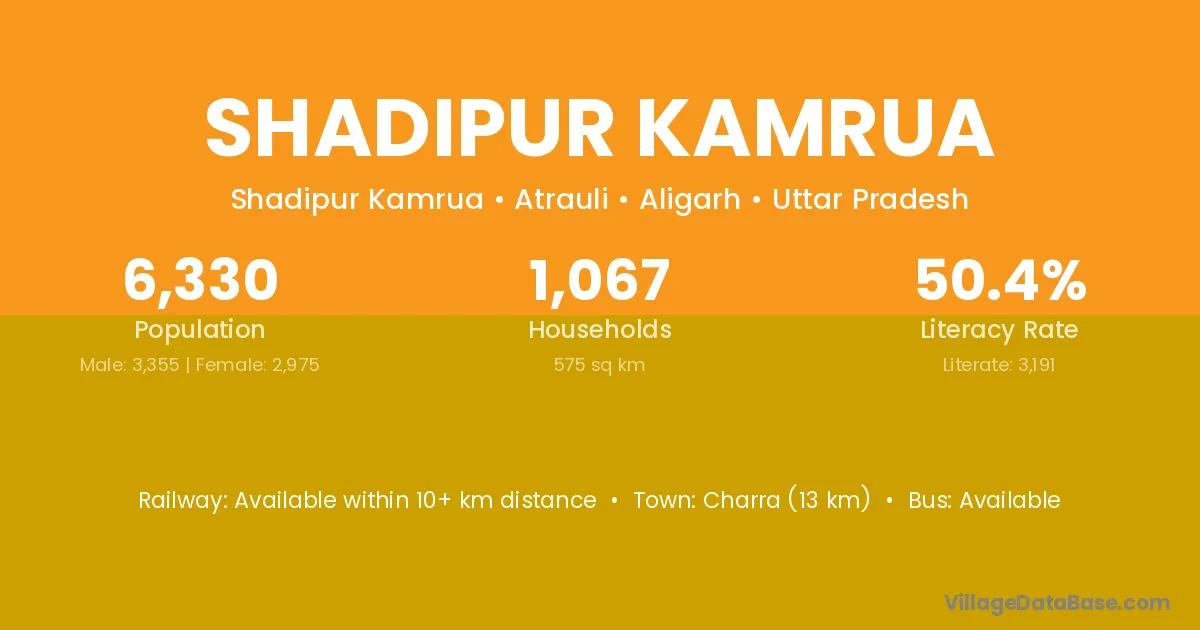 Shadipur Kamrua village has a total population of 6,330 people, of which 3,355 are males and 2,975 are females.