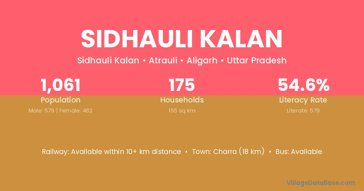 Sidhauli Kalan village has a total population of 1,061 people, of which 579 are males and 482 are females.