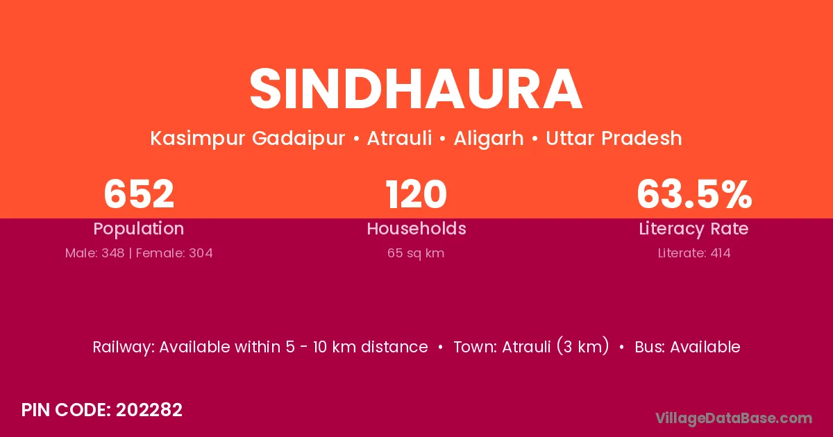 Atrauli (3 km) is the nearest town to Sindhaura village for major economic activities and is located approximately 3 km away.