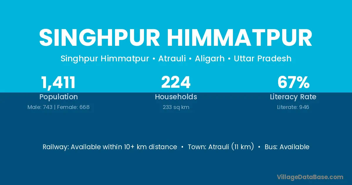 Atrauli (11 km) is the nearest town to Singhpur Himmatpur village for major economic activities and is located approximately 11 km away.