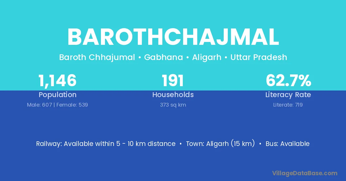 Aligarh (15 km) is the nearest town to Barothchajmal village for major economic activities and is located approximately 15 km away.