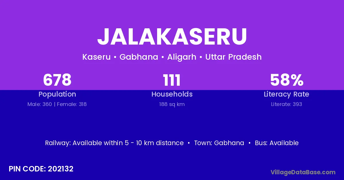 Jalakaseru village has a total population of 678 people, of which 360 are males and 318 are females.