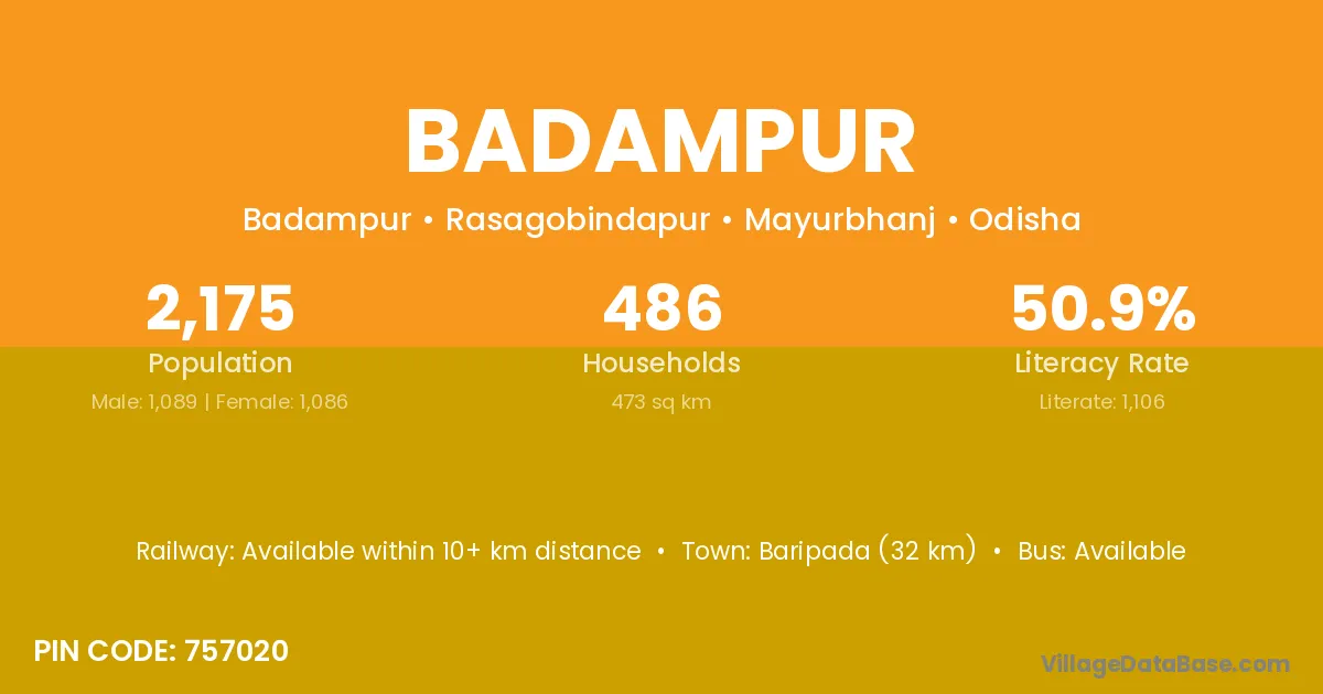 The literacy rate of Badampur village is 53.41%. Male literacy stands at 66.18% and female literacy at 38.67%.