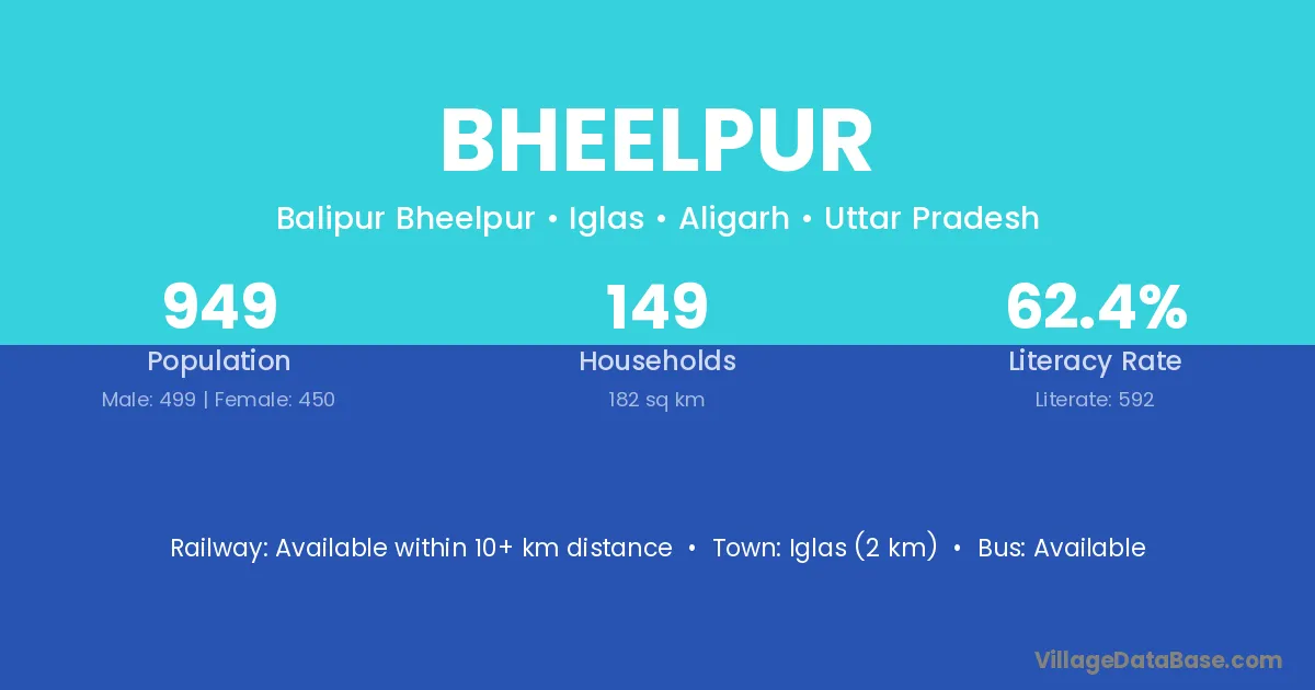 Iglas (2 km) is the nearest town to Bheelpur village for major economic activities and is located approximately 2 km away.