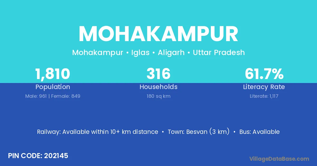 Besvan (3 km) is the nearest town to Mohakampur village for major economic activities and is located approximately 3 km away.