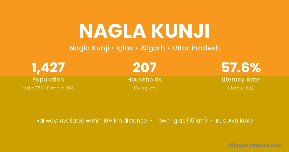 Nagla Kunji village has a total population of 1,427 people, of which 759 are males and 668 are females.