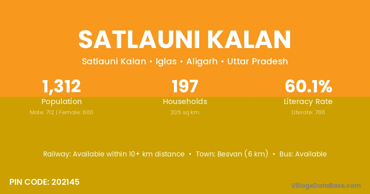 Besvan (6 km) is the nearest town to Satlauni Kalan village for major economic activities and is located approximately 6 km away.