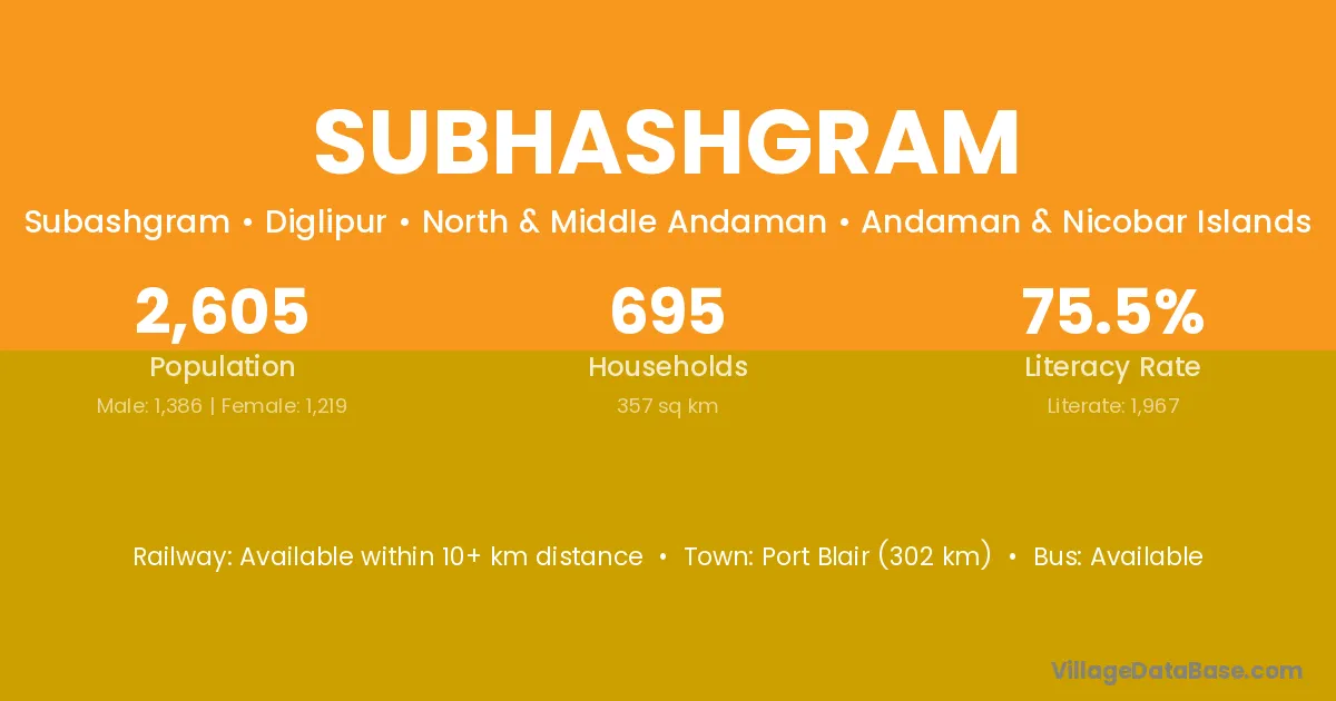 Subhashgram village has a total population of 5,502 people, of which 2,951 are males and 2,551 are females.