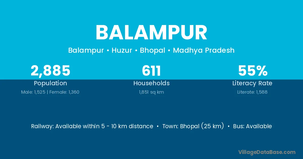 Balampur village has a total population of 2,283 people, of which 1,205 are males and 1,078 are females.
