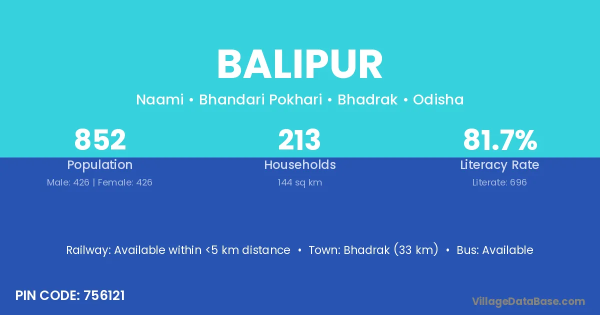 Balipur village has a total population of 999 people, of which 520 are males and 479 are females.