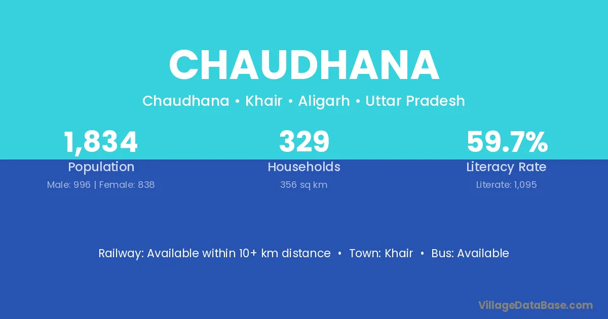 Chaudhana village has a total population of 1,834 people, of which 996 are males and 838 are females.