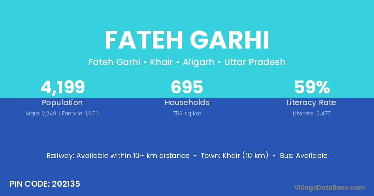 Khair (10 km) is the nearest town to Fateh Garhi village for major economic activities and is located approximately 10 km away.