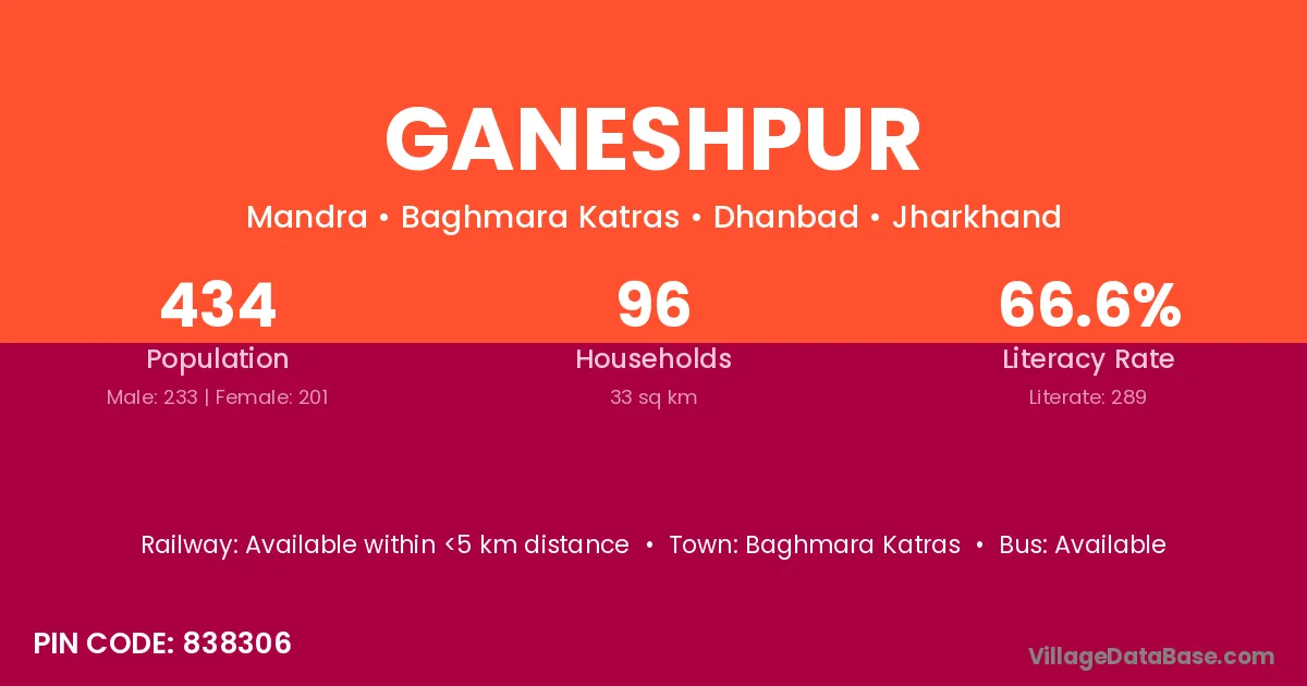 Ganeshpur village has a total population of 1,746 people, of which 922 are males and 824 are females.