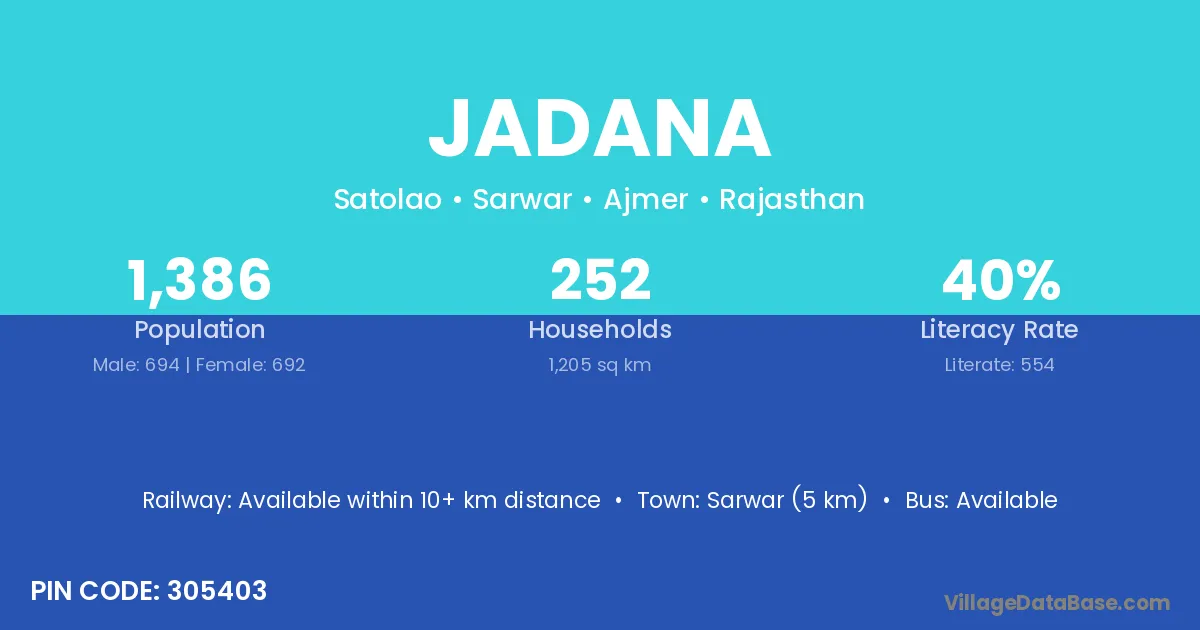 Jadana village has a total population of 1,501 people, of which 803 are males and 698 are females.