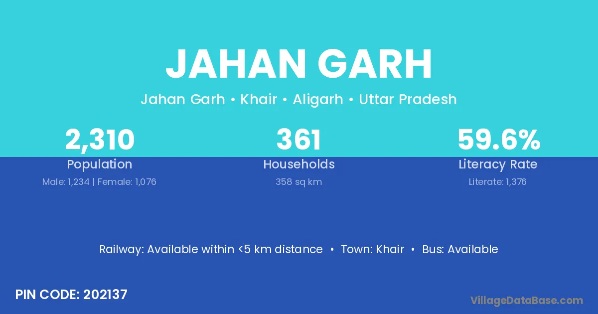 Khair is the nearest town to Jahan Garh village for major economic activities