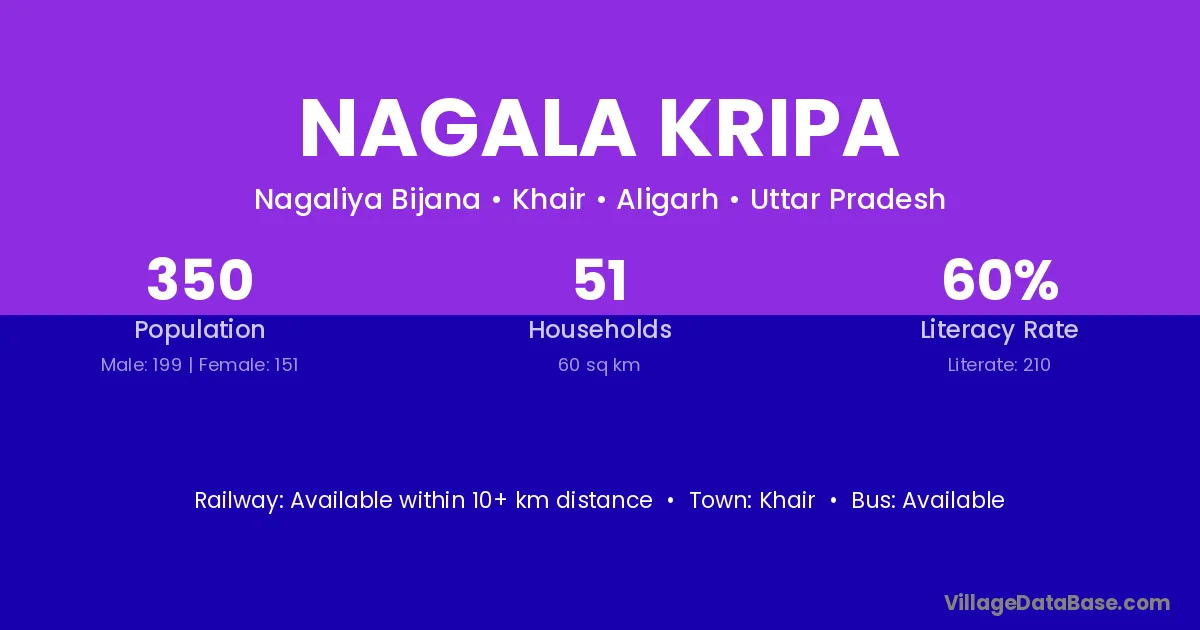 Khair is the nearest town to Nagala Kripa village for major economic activities