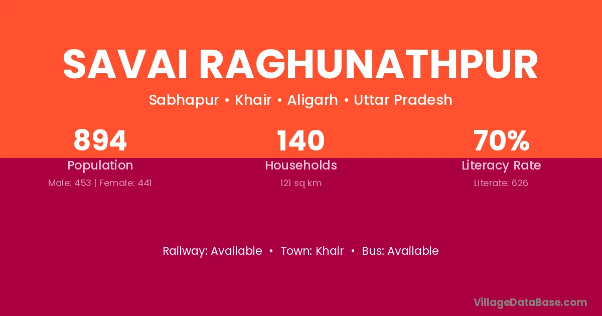 Savai Raghunathpur village has a total population of 894 people, of which 453 are males and 441 are females.