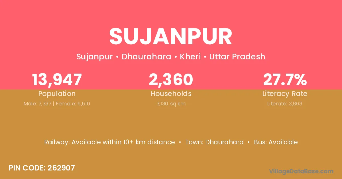 Khair (8 km) is the nearest town to Sujanpur village for major economic activities and is located approximately 8 km away.