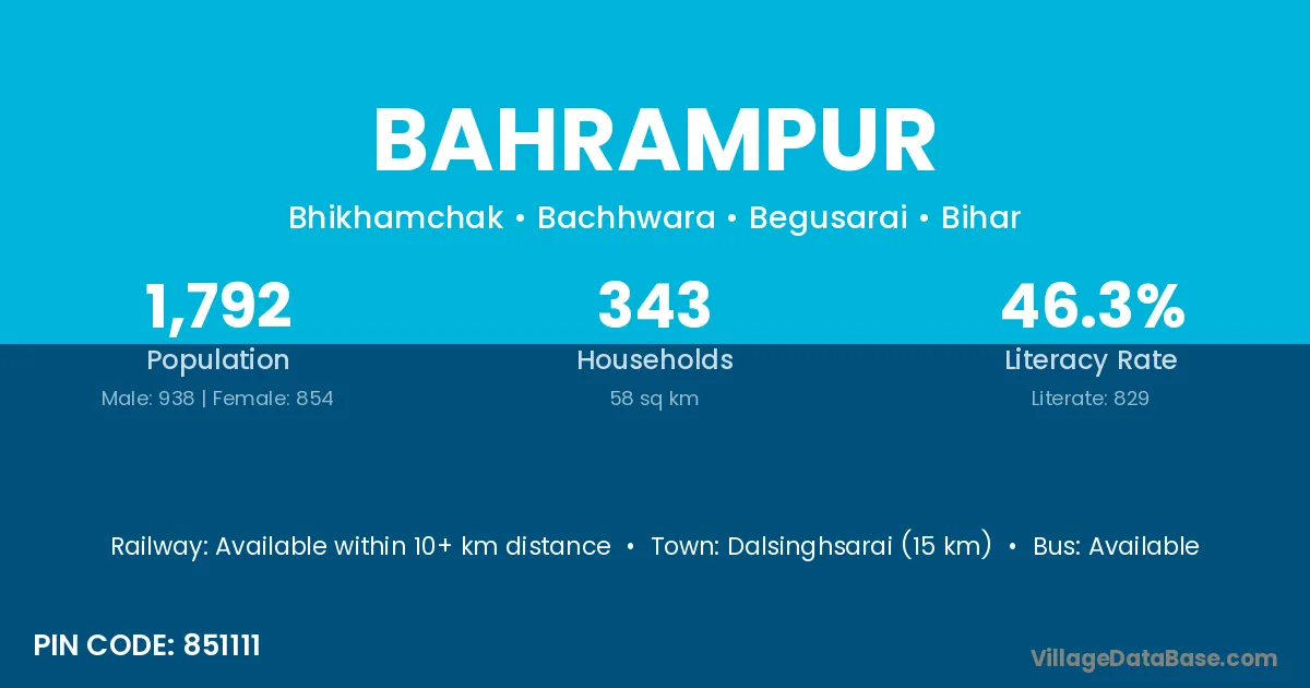 Bahrampur village has a total population of 1,729 people, of which 906 are males and 823 are females.