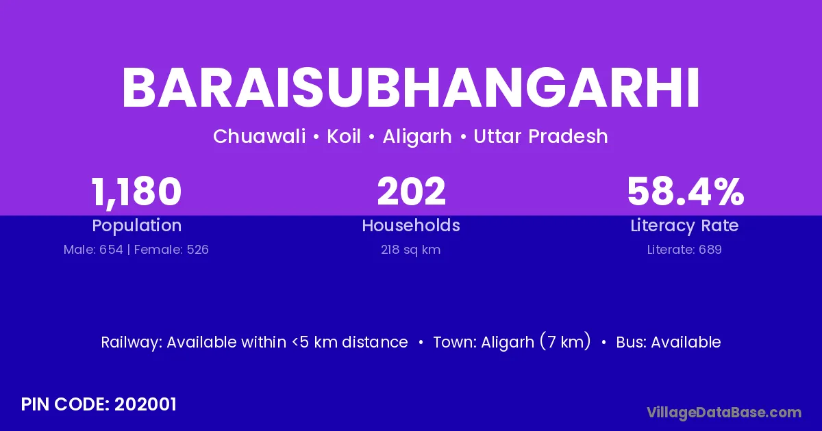 Aligarh (7 km) is the nearest town to Baraisubhangarhi village for major economic activities and is located approximately 7 km away.