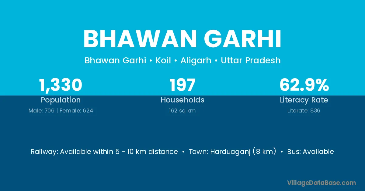 Harduaganj (8 km) is the nearest town to Bhawan Garhi village for major economic activities and is located approximately 8 km away.