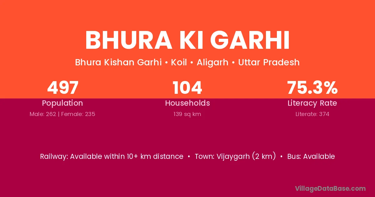 Bhura Ki Garhi village has a total population of 497 people, of which 262 are males and 235 are females.
