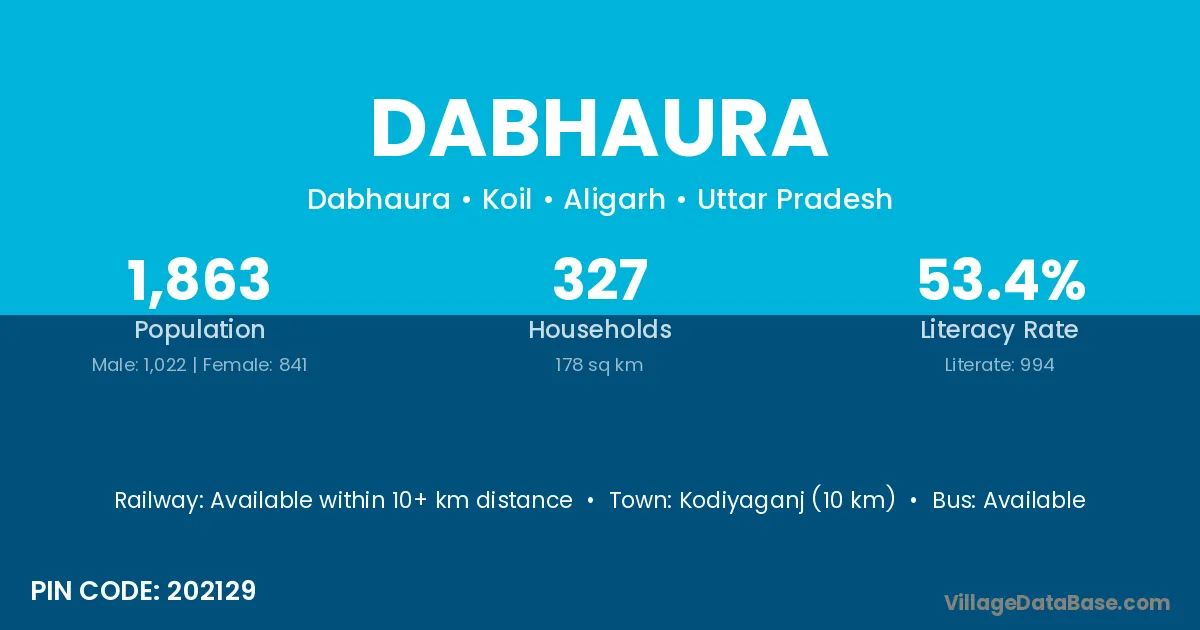 Kodiyaganj (10 km) is the nearest town to Dabhaura village for major economic activities and is located approximately 10 km away.