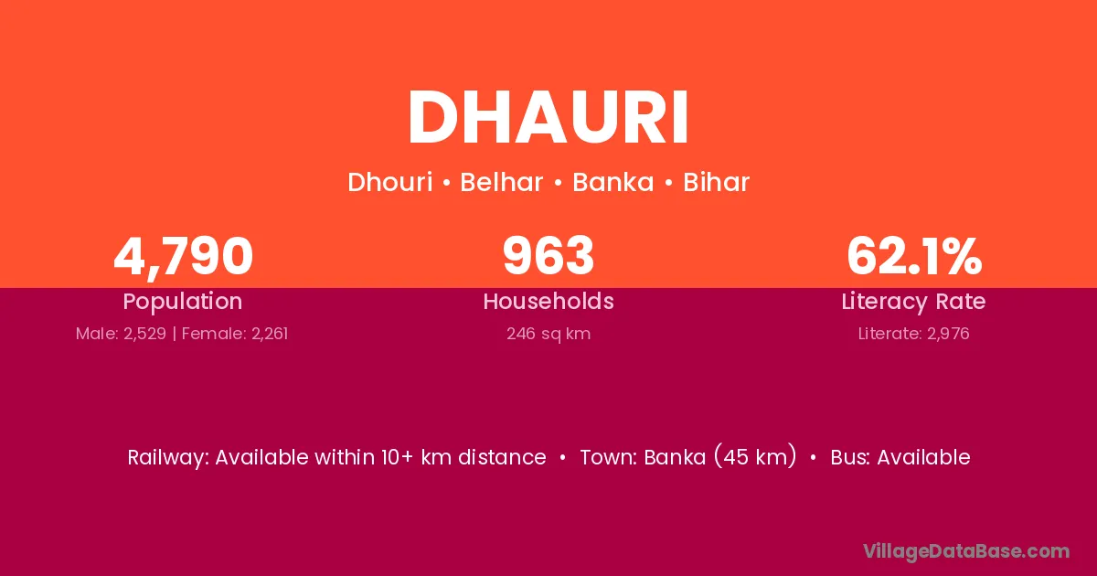 Akrabad (3 km) is the nearest town to Dhauri village for major economic activities and is located approximately 3 km away.