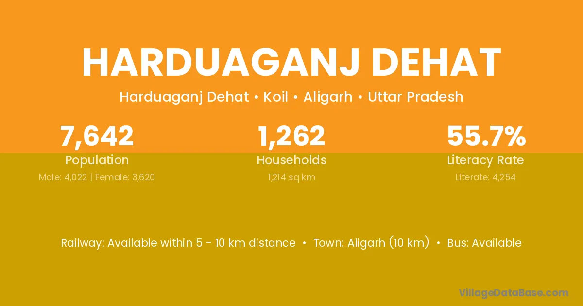 Aligarh (10 km) is the nearest town to Harduaganj Dehat village for major economic activities and is located approximately 10 km away.