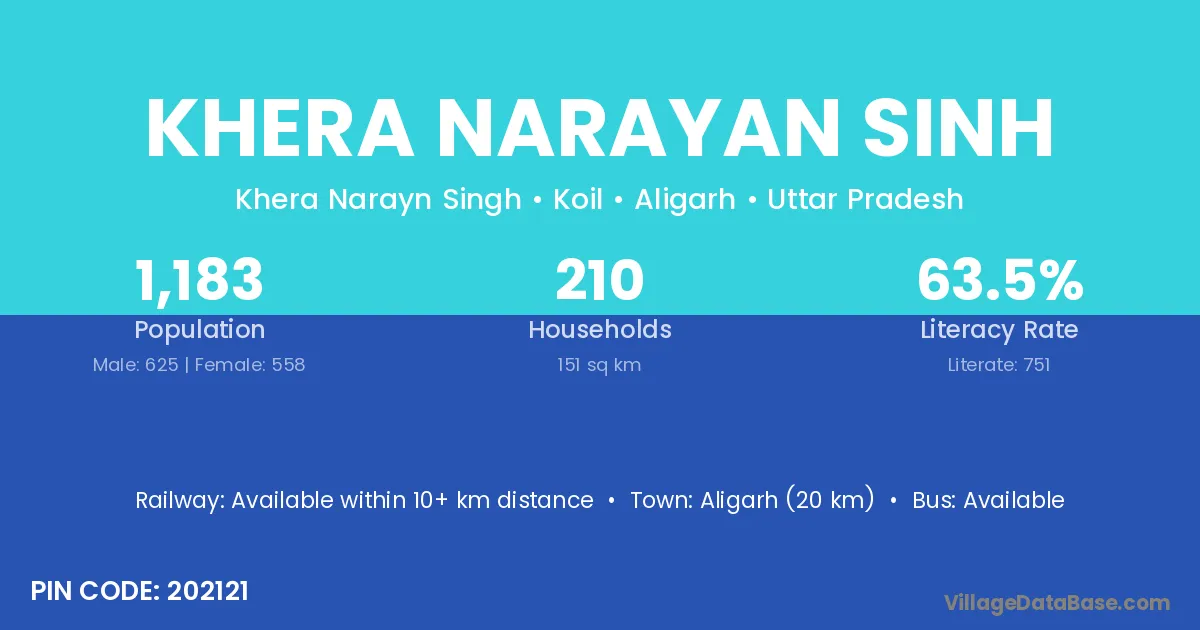 Aligarh (20 km) is the nearest town to Khera Narayan Sinh village for major economic activities and is located approximately 20 km away.