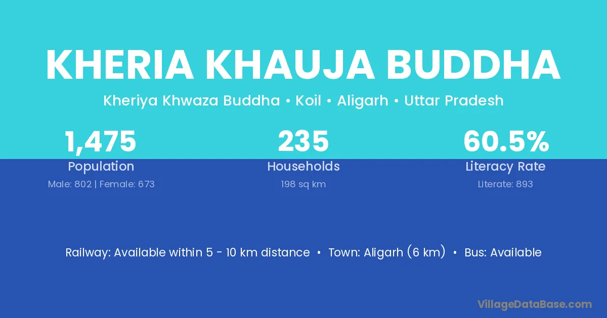 Aligarh (6 km) is the nearest town to Kheria Khauja Buddha village for major economic activities and is located approximately 6 km away.