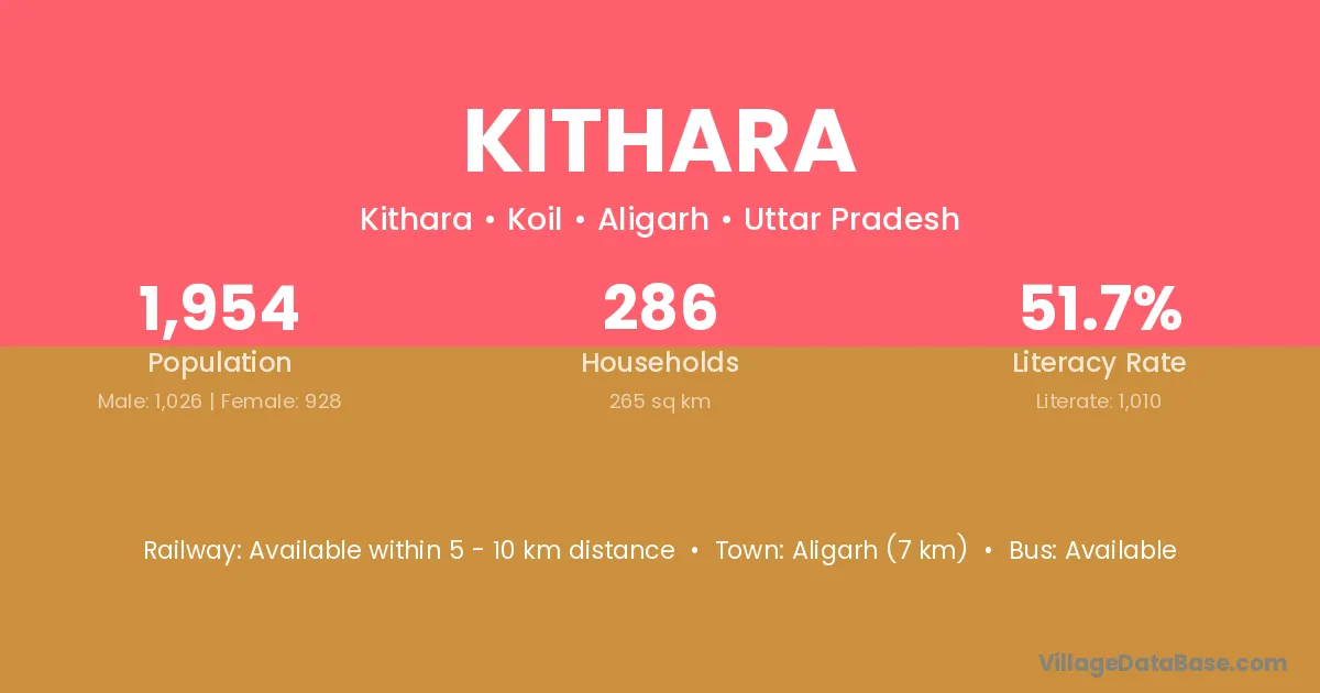 Aligarh (7 km) is the nearest town to Kithara village for major economic activities and is located approximately 7 km away.