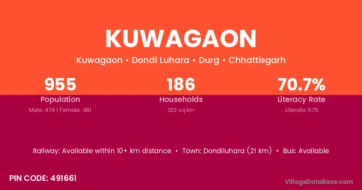 Kuwagaon village has a total population of 1,083 people, of which 555 are males and 528 are females.