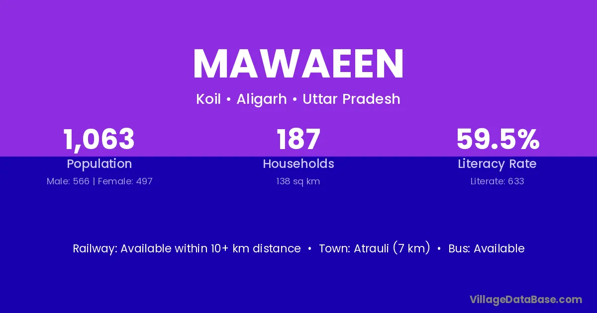 Atrauli (7 km) is the nearest town to Mawaeen village for major economic activities and is located approximately 7 km away.