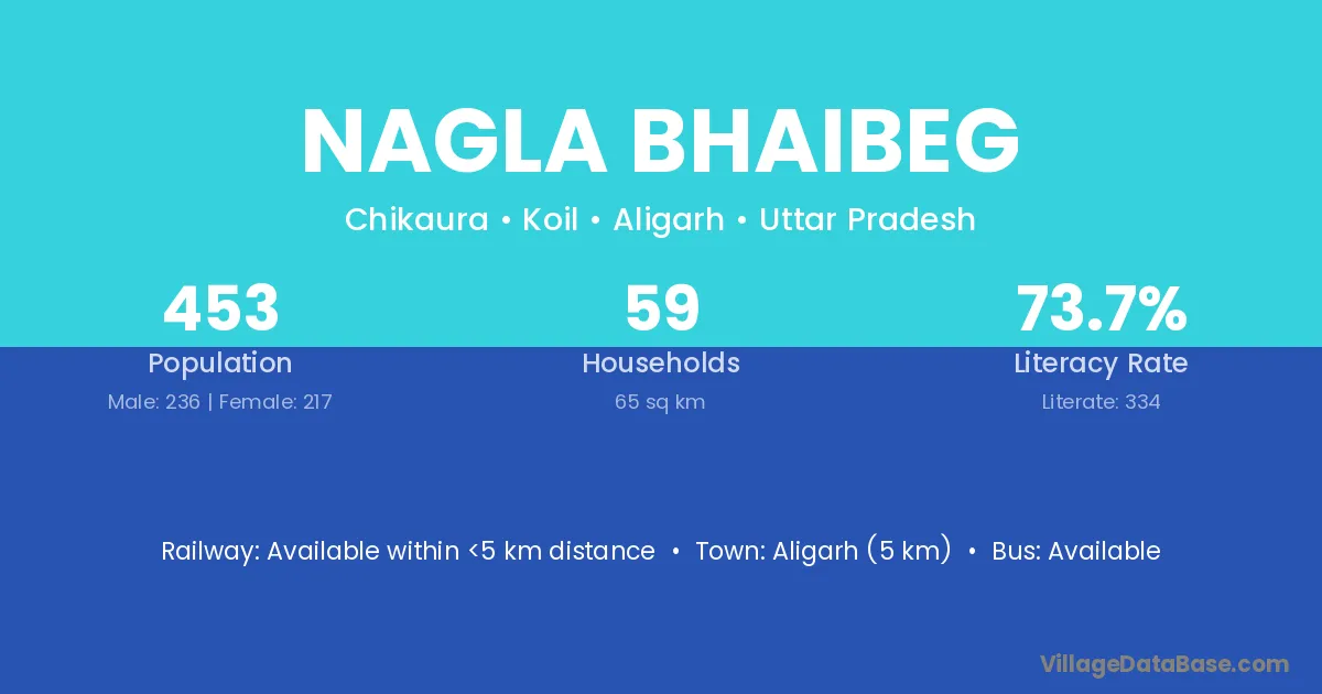 Aligarh (5 km) is the nearest town to Nagla Bhaibeg village for major economic activities and is located approximately 5 km away.